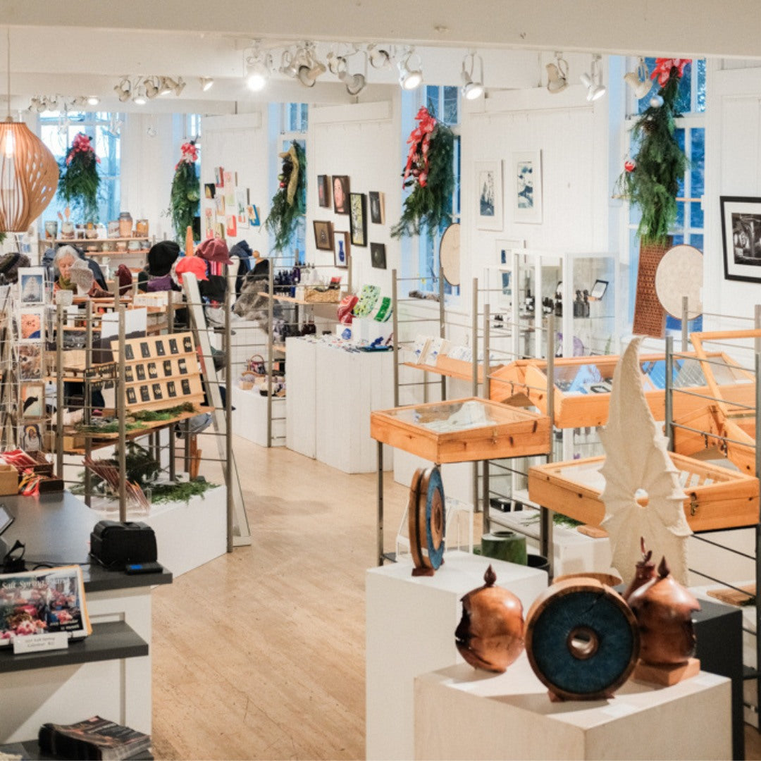 Our parent organization Salt Spring Arts has been operating the Artcraft Gallery + Shop as a seasonal event for more than 55 years from historic Mahon Hall. Our online shop, launched in 2022, now offers people all over the world access to a curated selection of our products year round.